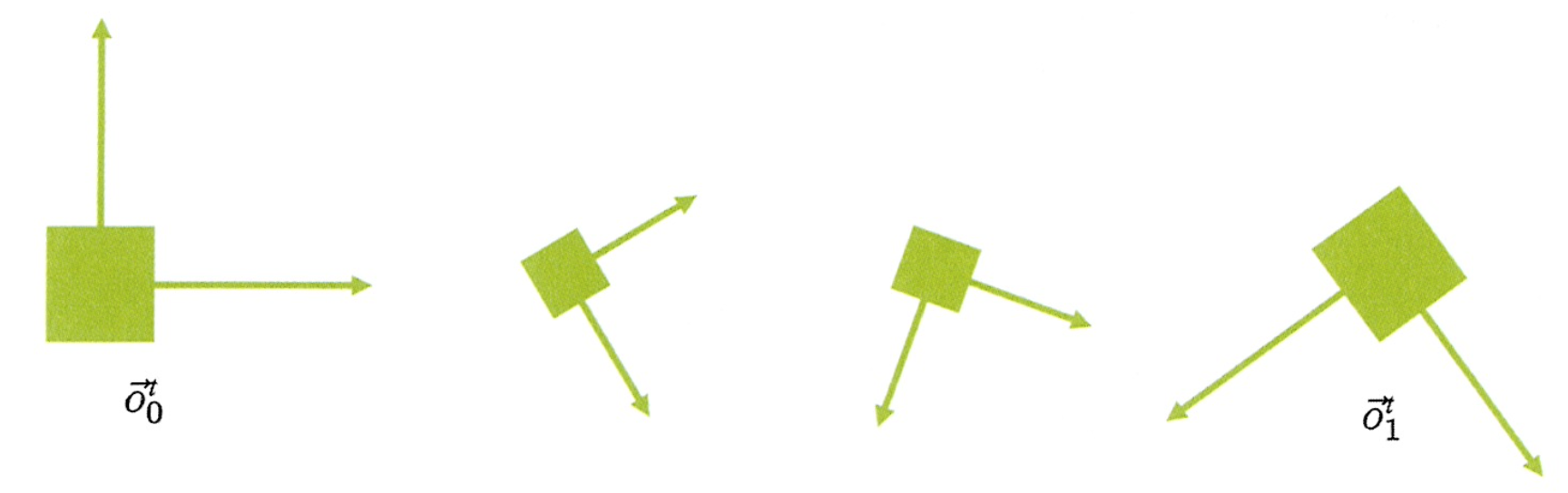 평행이동은 단순하기 때문에, 우리는 원점이 고정된 상태에서 하나의 좌표계에서 다른 좌표계로 바꾸는 움직임에만 집중하면 된다. 수학적으로 이러한 움직임은 항상 하나의 벡터를 회전축으로 하는 회전 변환임을 증명할 수 있다.